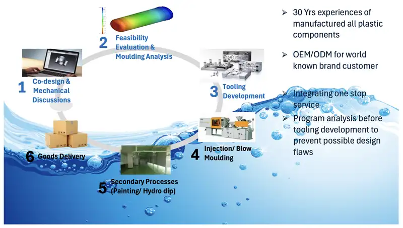 Founded in August 1989, INFusion Plastics Industries Inc. (was known as GFK) specializes in the production of plastic injection products. During the starting phrase, our areas of expertise include plastic injection products such as automotive, motorbike and All Terrain Vehicles parts and air filters. We have accumulated mold development technology and production capacity over the years. More over, in 2012, INJEX company has joined the company Group to further expand and also to complete the product lines, in the area of blow molding.